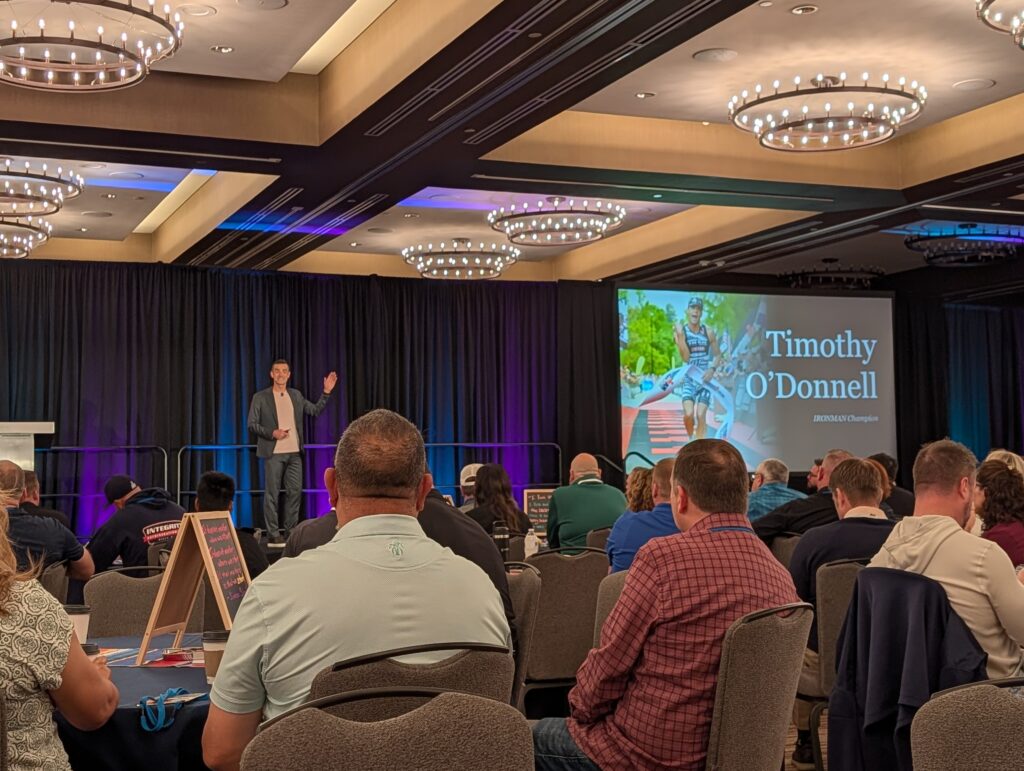 Professional long-course triathlete Timothy O’Donnell started the day with a keynote built around one idea: the champion is a mindset. A widowmaker heart attack mid-race nearly ended his career. A year later, he came back and qualified for the Ironman World Championship. His built-forward system – rest, reframe, rebuild – gives leaders a simple framework for navigating hard moments and using them as a spark for growth.
